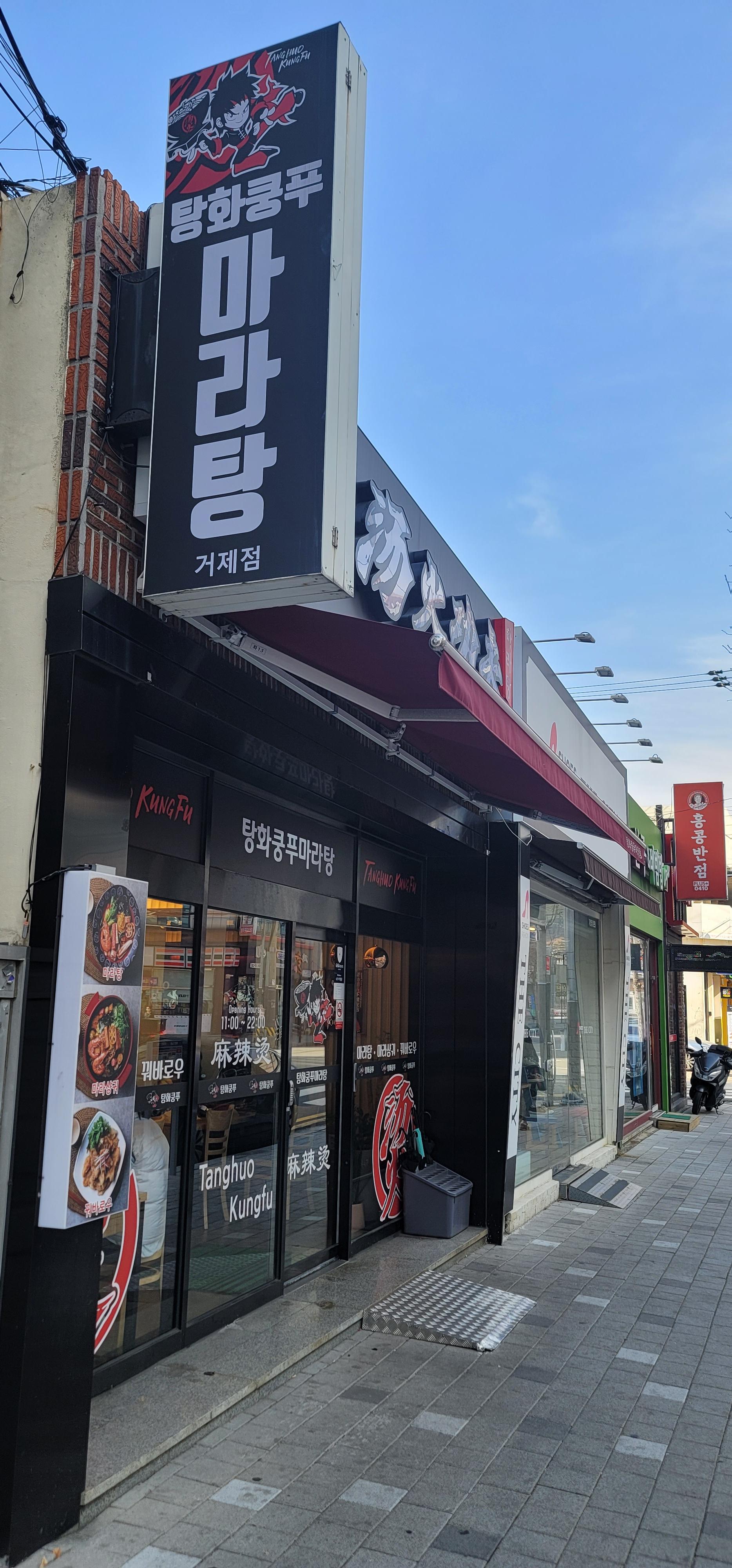안녕하세요? 오늘은 거제도 고현터미널 근처의 맛집을 소개해드릴까 합니다. 마라탕의 인기가 여전히 계속되고 있는 듯하고 특히 학생들도 많이들 좋아하는 것 같습니다. 그래서 발견한 '탕화쿵푸 마라탕 거제점'입니다. 위치는 고현터미널 근처이고 점심시간에 갔을 때는 대기를 해야 할 정도로 인기가 많은 곳이었습니다. 이곳의 인기비결에 대해서 매장 분위기, 맛평가, 추천이유 순으로 이야기해 볼까 합니다.