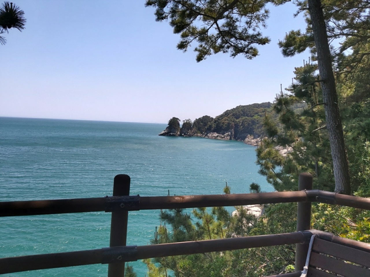 해맞이 전망대에서 울창한 동백나무와 후박나무, 대나무이 어우러진 숲길로 들어서면 동백꽃이 수북히 쌓인 숲길인 '동백터널'을 지나면 '해안선 전망대가 나오는데 따뜻한 봄날 여기 나무벤치에 앉아서 소나무 절벽아래 부서지는 하얀 파도와 바람소리를 느끼고 있노라면 세상사 잊고 자연과 하나되는 물아일체 지경에 빠져든다.