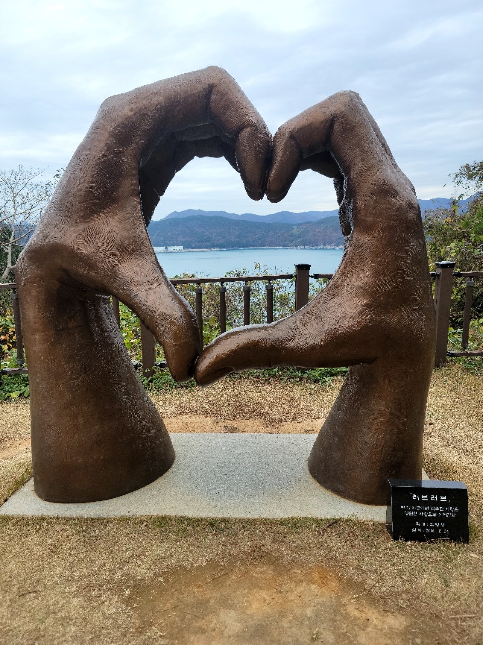 가슴 아픈 역사인 포진지와 동백터널을 벗어나면 경비행장 활주로였던 개활지가 나타나는데, 이곳  '해맞이 전망대'에는 연인,가족들이 사진찍고 간다는 '러브러브 하트상'이 있고, 당일치기가 아니라 민박집 또는 펜션에서 자고가는 여행객은 새벽녘 '해맞이 전망대'에 올라 와 수평선 너머 일출 광경을 카메라에 담는다고 한다.