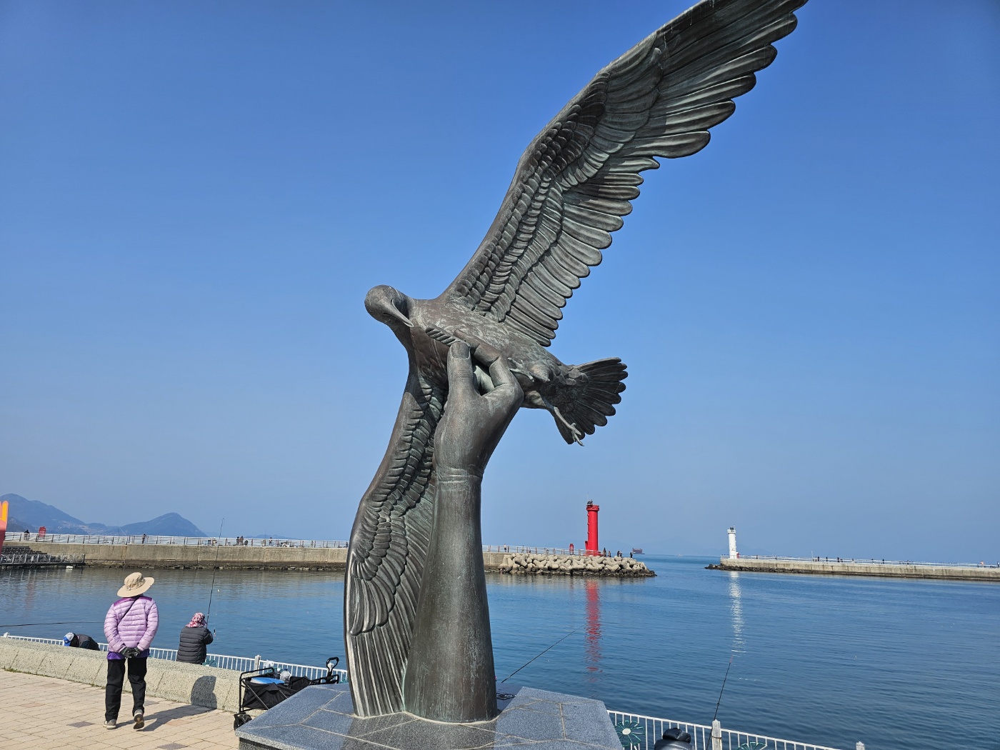 갈매기 동상 뒤로 보이는 빨간 등대와 하얀 등대가 능포항을 포근하게 감싸주는 모습으로 참으로 고즈넉한 느낌이다.