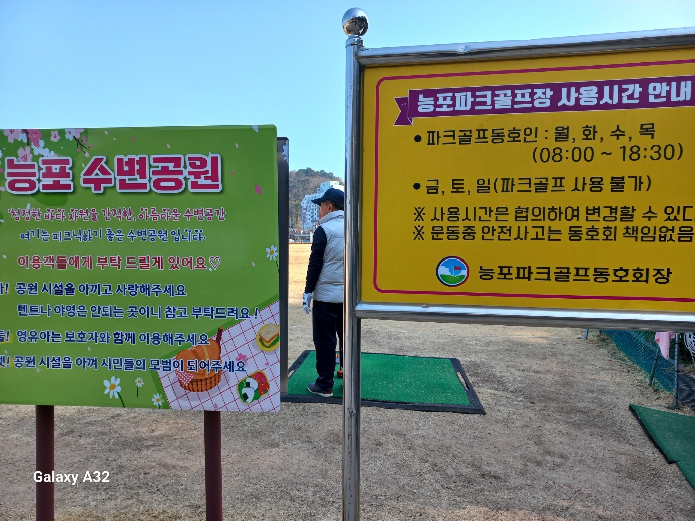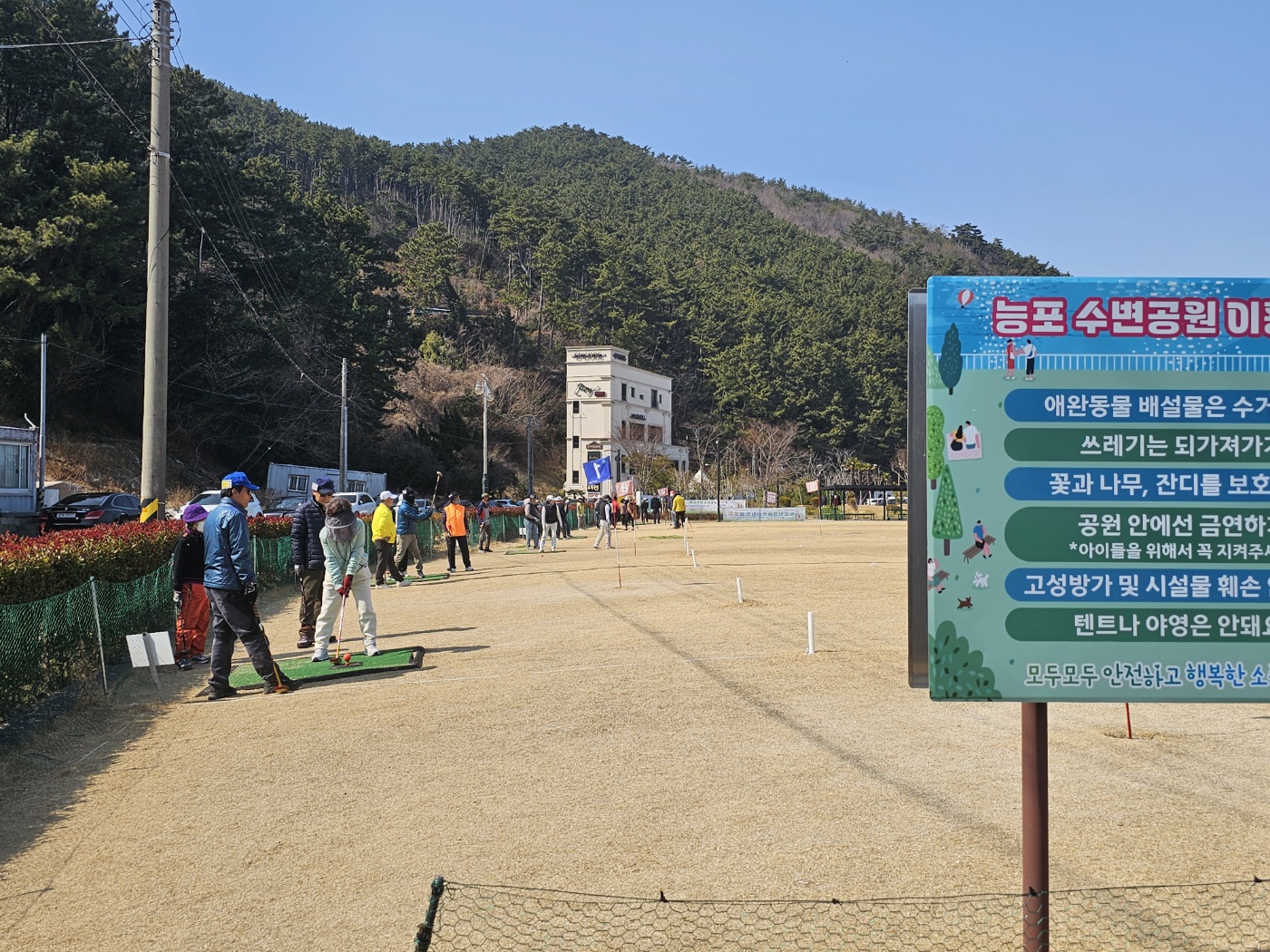바닷가 늪이 있는 곳에서 자라는 마름이라는 풀을 의미하는 마름 '능'자에다가 물가 '포'자가 합쳐져 '능포'라는 마을 이름이 지어진 곳임을 알려주고 있었다. 여길 지나 좀더 들어가니 능포파크골프장이라는 곳이 나오는데 이곳은 연세 있으신 분들이 3~4명씩 팀을 짜서 홀인원 하는 연습을 하는 곳 같았다.