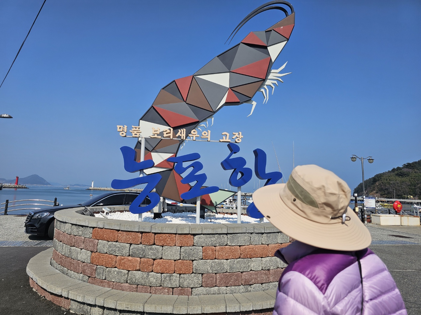 2022년에 능포항 입구에서 맞이해 주던건 돌고래 석상이었는데, 올해 가보니 돌고래 석상 대신에 보리새우 조형물로 바뀌어 있었다. 아마도 능포 입구에 있는 상징적인 조형물이다보니 능포항 특산물인 보리새우를 강조하고 싶어서 변경한게 아닌가 싶었다.