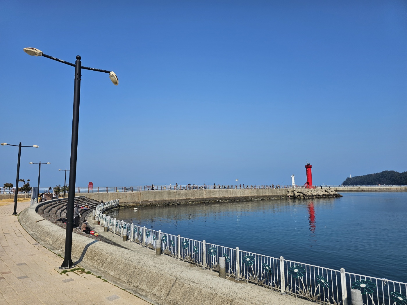 능포수변공원에서 빨간 등대쪽으로 가까이 갈수록 낚시하러 나온 가족들이 다닥다닥 붙어서 낚시대를 드리우고 있었다. 아마도 일요일이라 그런지 낚시꾼들이 더 많았던 같고 가족 단위로 캠핑 겸 낚시를 즐기러 온 분들도 있어 캠핑카들과 SUV 차량도 많았다.