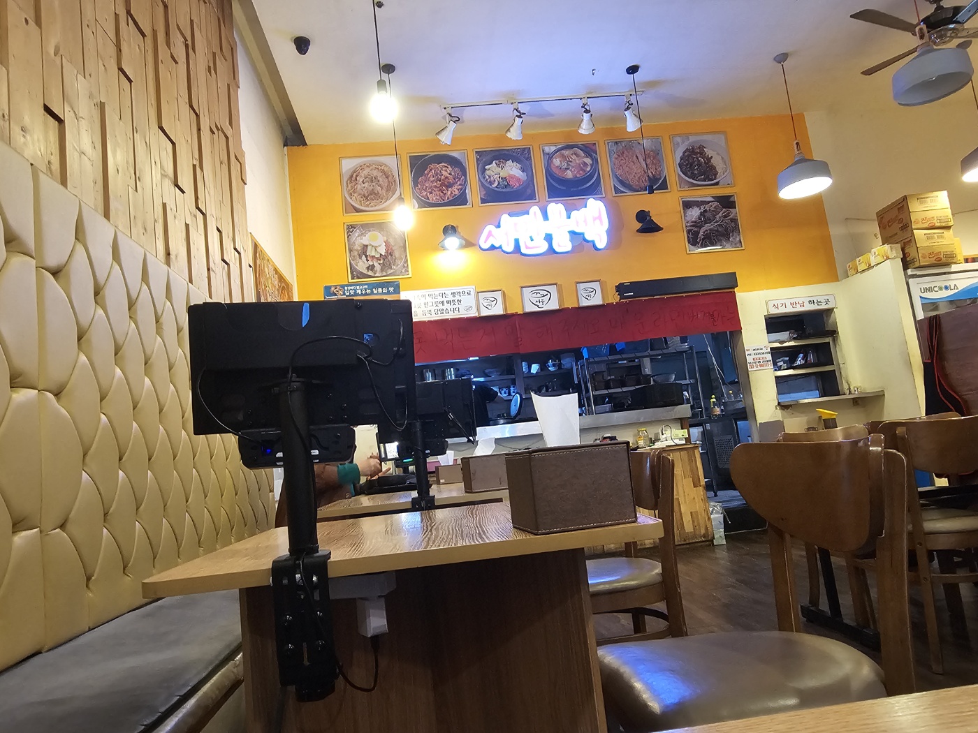 서민불백 매장 안으로 들어서면 화려하진 않지만 서민처럼 편안한 인테리어의 홀이 나오는데, 4인이 앉을 수 있는 좌석이 대략 6개 이상 되어 보인다. 빈 자리 중 편안한 곳에 앉아서 자리마다 설치된 키오스크에서 원하는 메뉴를 주문하면 된다.