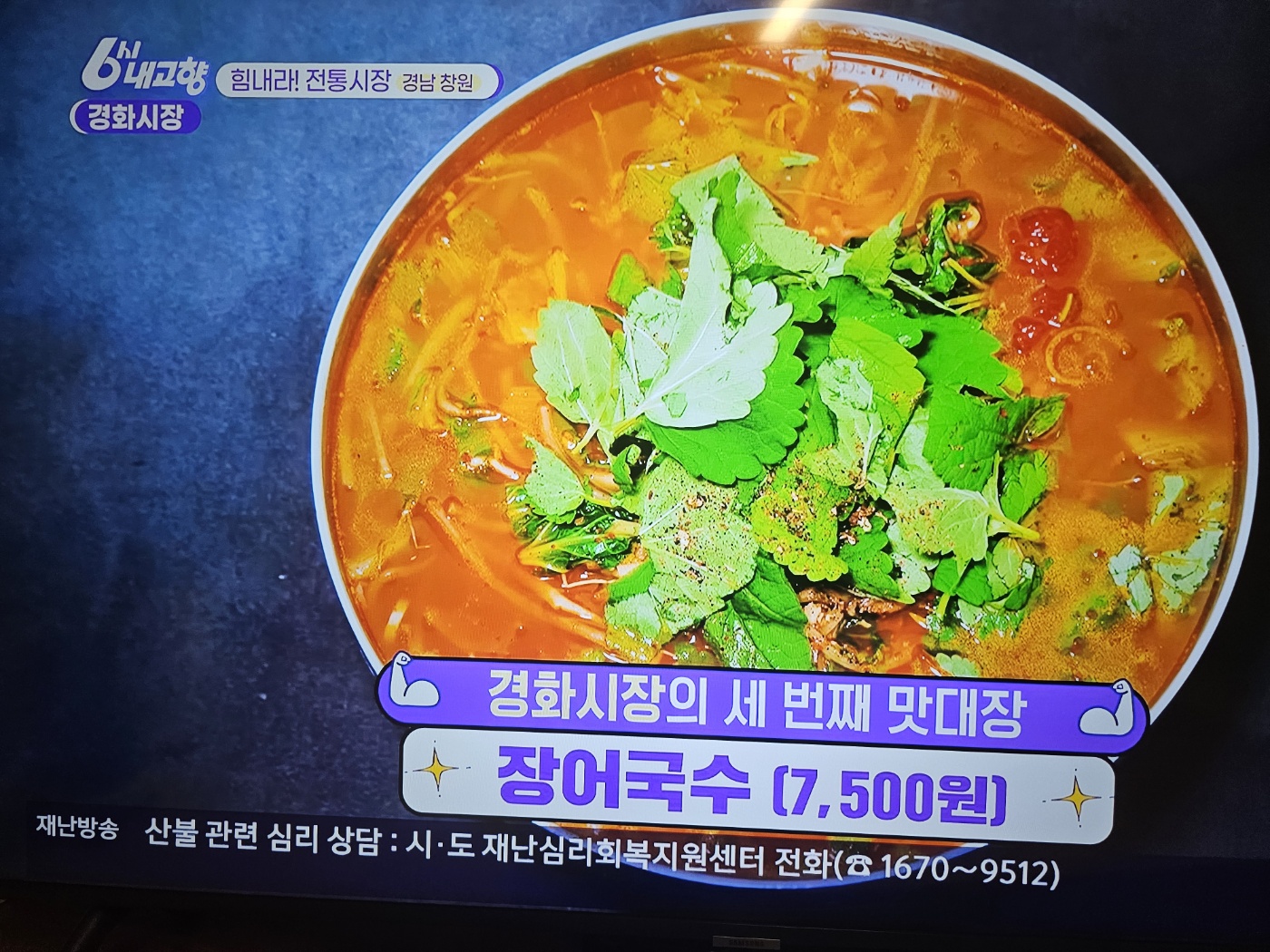 세번째 소개된 맛대장으로는 75년 전통의 시장할매국수 장어국수인데 바다장어를 푹 삶아 체에 갈아서 진한 육수를 만들고 방아잎에 산초가루까지 넣어주니 맛이 일품이라고 하네요. 얼큰한 장어국수가 매우셔서 힘든 어르신들은 이곳 대표음식인 콩국수를 먹는 것도 괜찮은 선택일 듯 싶습니다.