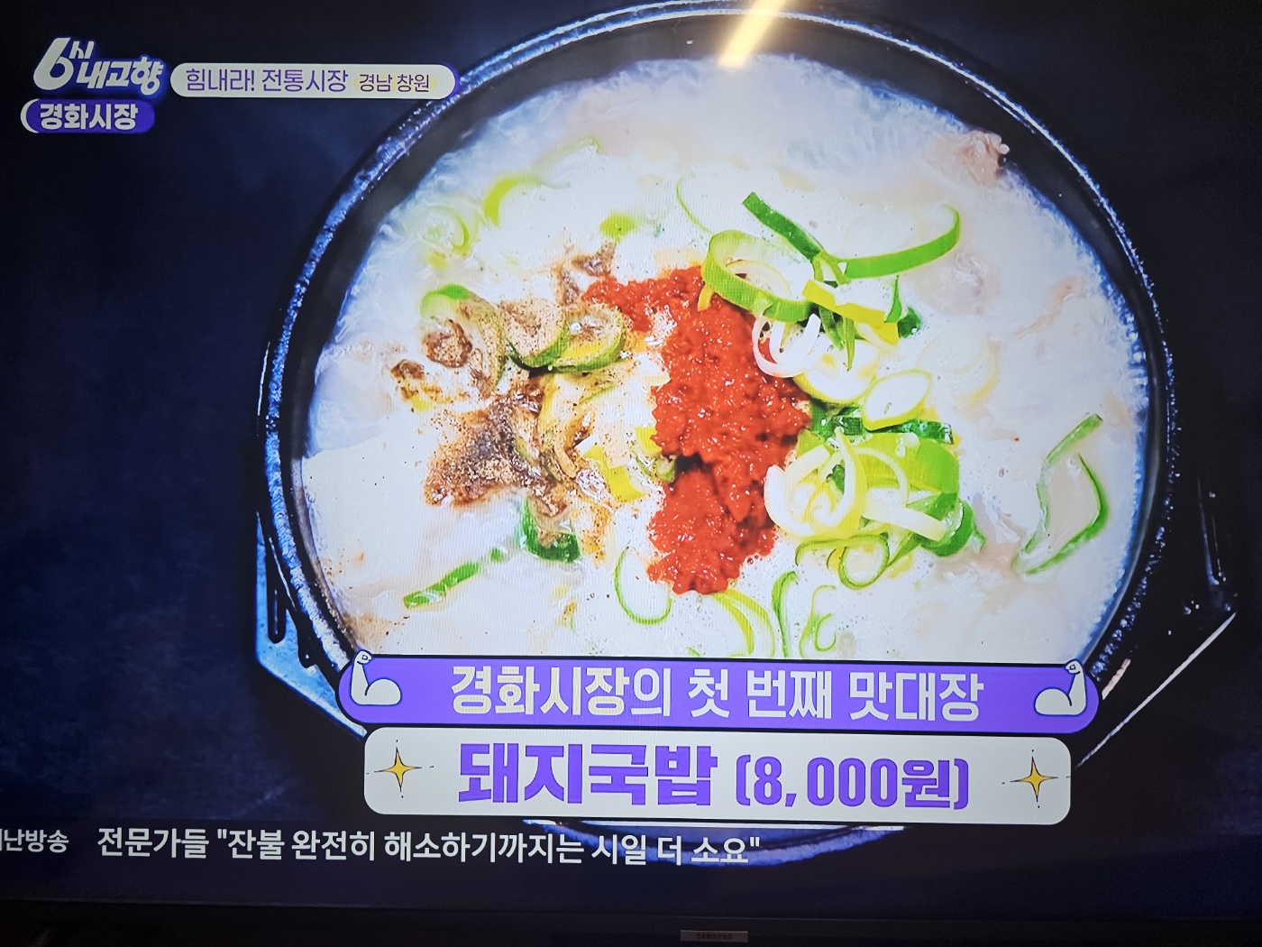 첫번째 소개된 맛대장 맛집으로는 40년 전통의 할매국밥 돼지국밥이었는데 시어머니와 며느리가 50년째 운영하고 있는데, 하루 종일 불을 끄지 않고 푹 끓여낸 진한 육수에 뚝배기를 가득 고기를 푸짐하게 넣어서 나오는데 정말 돼지국밥이 먹음직스러워 보였습니다. 어떤이는 선지국밥도 맛있다고 추천하네요~