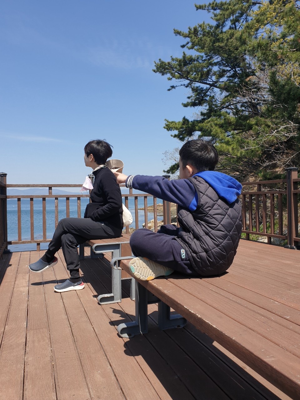조그만 게 또는 고둥을 채집하려면 고운 모래 백사장 보다는 안쪽에 돌들이 많은 곳이 유리하다. 2020년6월말 아이의 사촌여동생, 할머니 이렇게 3대가 함께 와서 채집 활동의 삼매경에 빠진 추억이 있다.