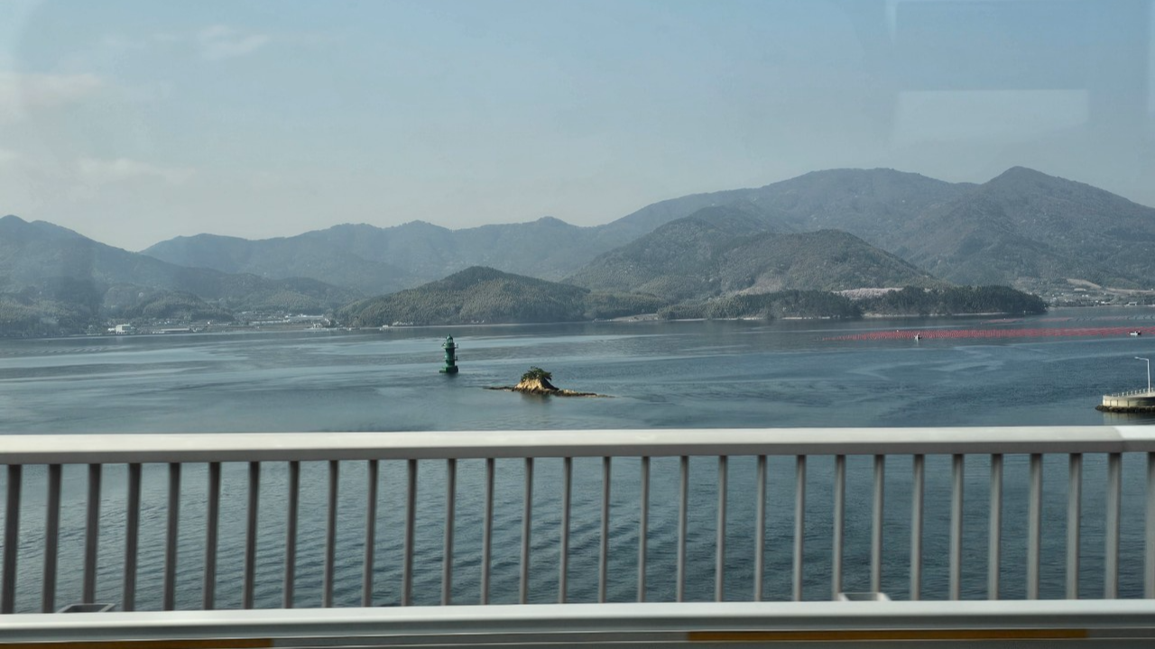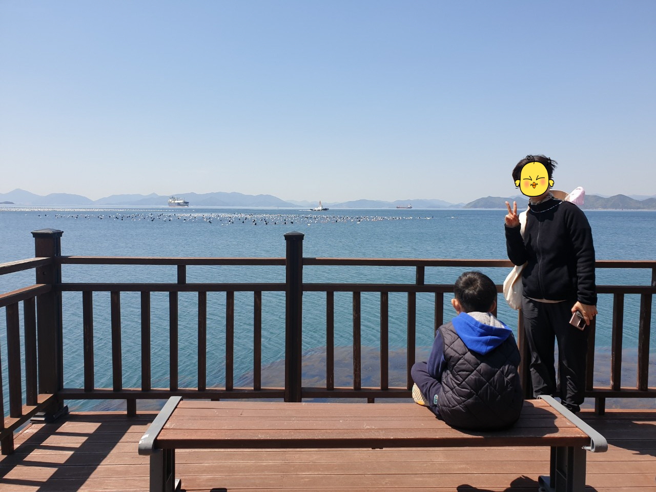 전망대 바로 앞 굴 양식장에선 다양한 모양과 색상의 스티로품 부표들이 둥둥 떠있고 그 양식장을 피해 돌아가는 어선들을 바라볼 수 있다.