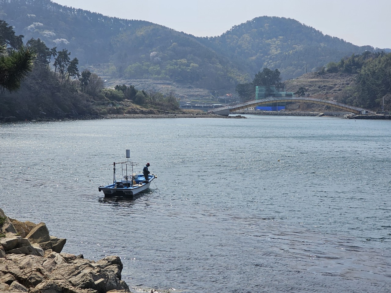 전망대 아래 바위 앞에 톳이 많은데 그 옆에서 통발을 건져 올리는 어부의 손놀림이 분주하다. 바위와 바다, 그리고 배가 수야방도를 뒷배경으로 삼아 어촌의 고즈넉한 풍경을 연출한다.