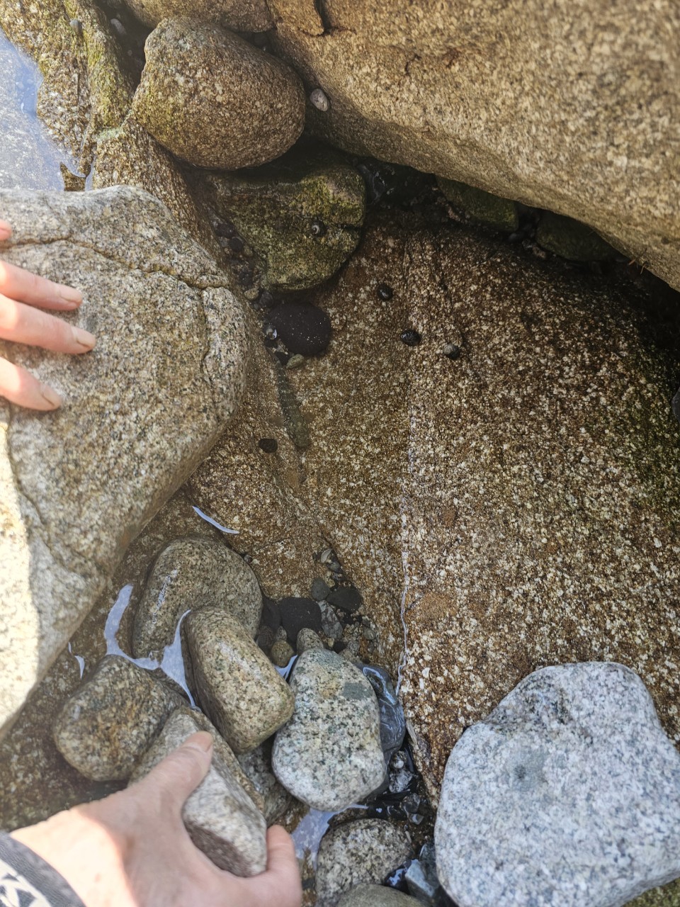 만약 아이들이랑 함께 놀러 왔다면 망치 몽돌 해변 제일 안쪽에 있는 바위들 있는 곳에는 바위에 들러붙은 삿갓 조개(거제에선 '배말'이라해서 칼국수로 유명), 따개비, 해조류 등을 보여 주면서 자연생태교육 및 놀이도 하기에 좋아요.
