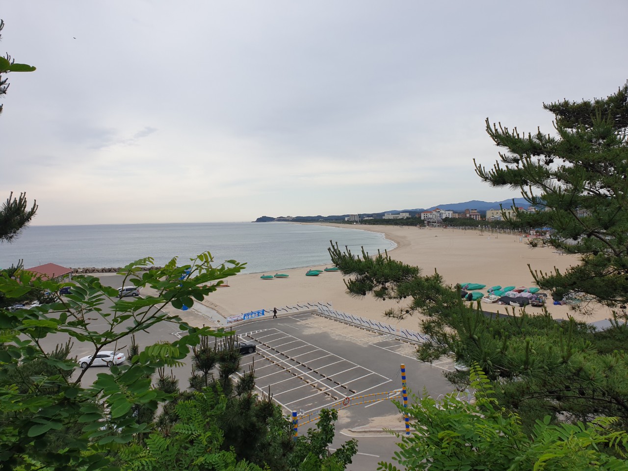 낙산사 여행시 가성비와 바다뷰가 좋은 낙산비치호텔에 하룻밤을 묵고 아이와 바닷가 모래사장에서 놀던 추억이 있다. 아래 사진은 낙산비치호텔 주차장에서 낙산해수욕장의 해변을 내려다 본 것이다.