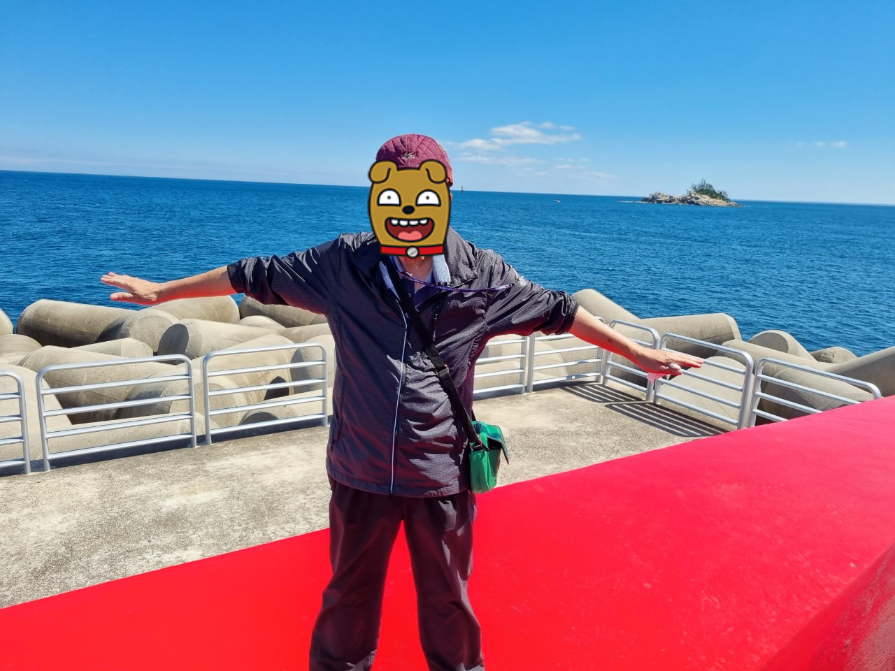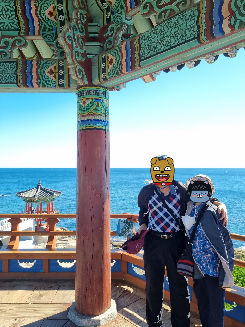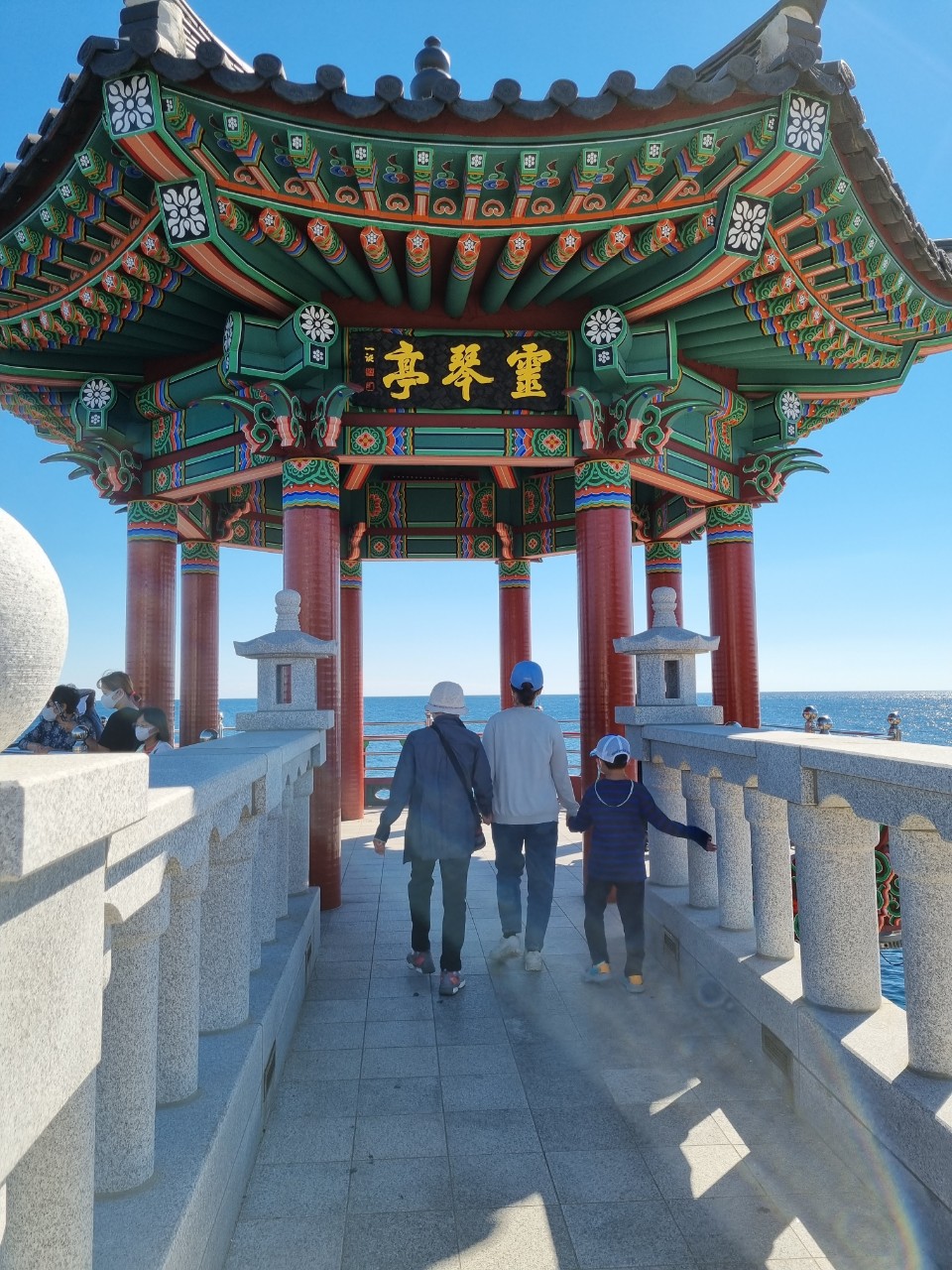 영금정 해돋이정자가 2025년 3월부터 7월까지 보도교 등 시설물 유지보수 공사가 있으니, 영금정 정자전망대 만을 본 후에 동명방파제로 가서 속초항북방파제등대(사진 속 빨간등대)까지 구경하고 오는 것으로 만족해야 할 듯 싶어요~