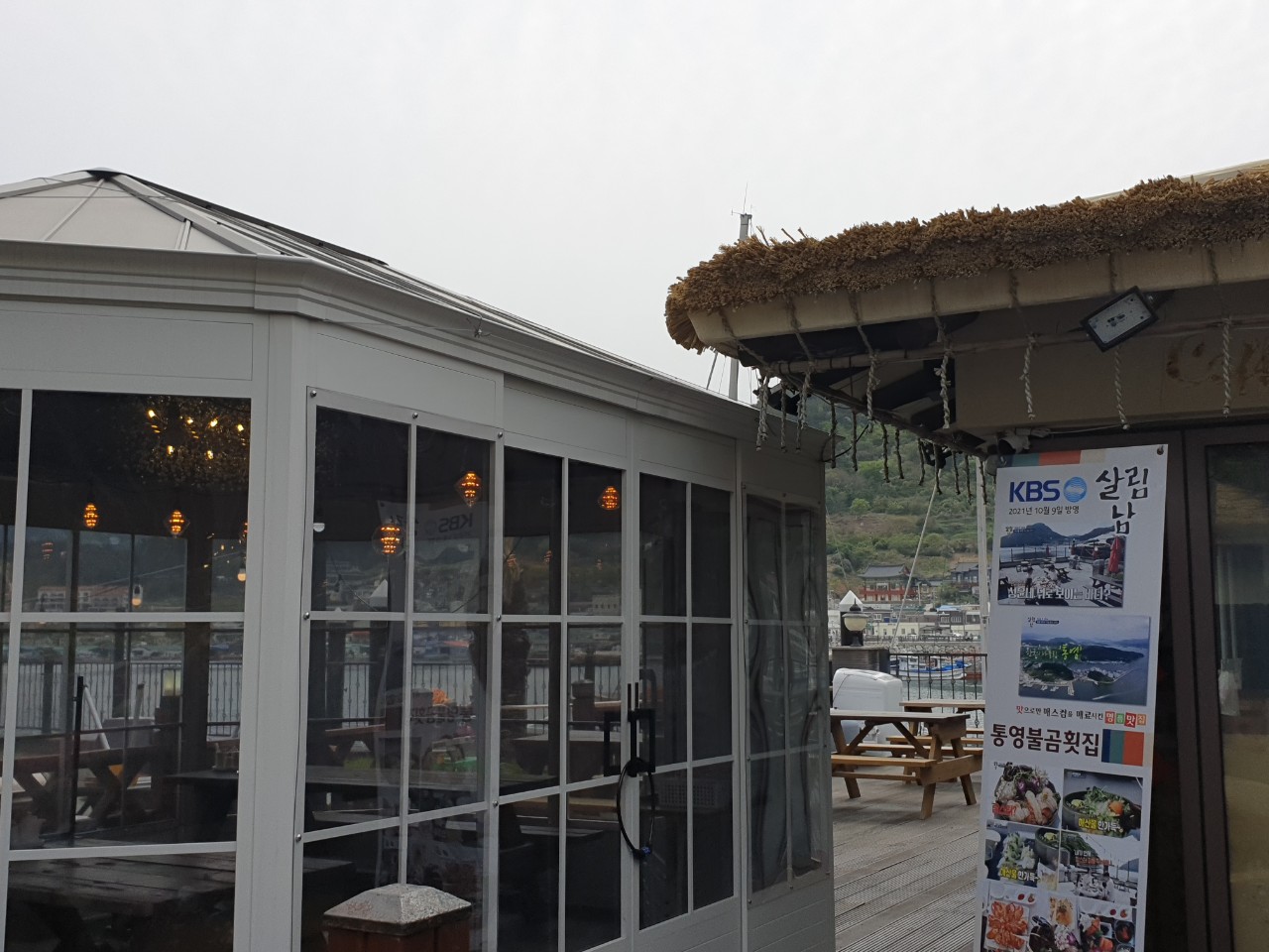 한산 마리나 호텔에 가까워 질 때면 자전거 도로끝이라는 푯말과 함께 커피숍과 레스토랑 등이 나타난다. 특히 통영은 다찌(정해진 가격을 내고 수십가지 안주가 끊임없이 나오는 통영식 선술집)로 유명한데, 여기 호텔에 불곰 다찌가 눈에 확 들어온다. 언젠가 호텔에서 숙박한다면 불곰 다찌 식당을 이용해 보리라~