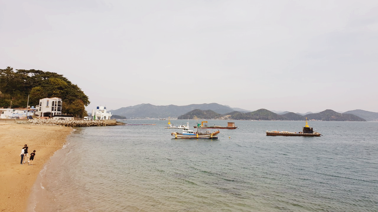 통영 수륙 해수욕장에서 통영등대낚시공원까지 1.1km, 통영등대낚시공원에서 한산 마리나 호텔&리조트까지 1.9km 총 3km 정도의 해안 산책로를 따라 트래킹하거나 자전거 타면서 고즈넉한 바다 풍경을 눈에 담기에 너무나 좋다.