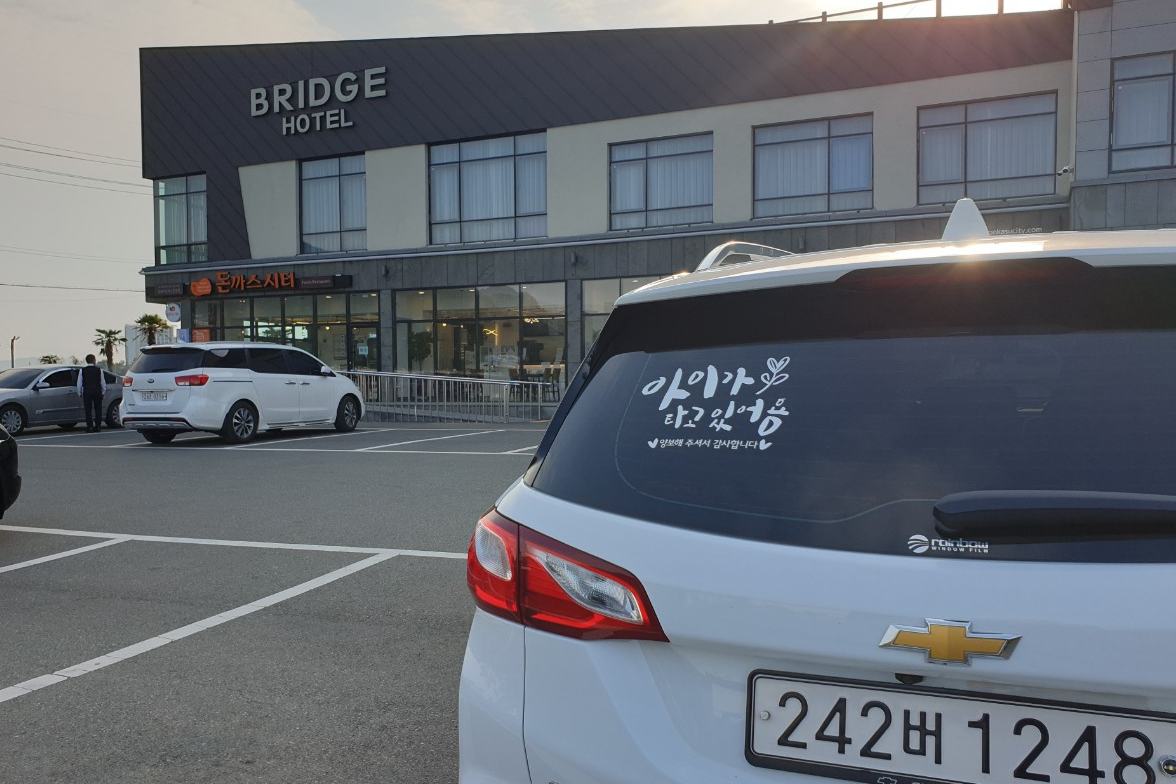 브릿지 호텔 입구에 다리 스타일의 구조물이 시선을 사로 잡는 포토존이 있다. 통영에서 거제를 바라보는 방향으로 있는 브릿지 구조물 위로 올라가 포즈를 취하고 찰칵~ 기념사진을 하나 남겨본다 ^o^ 이상으로 포스팅을 마칩니다.